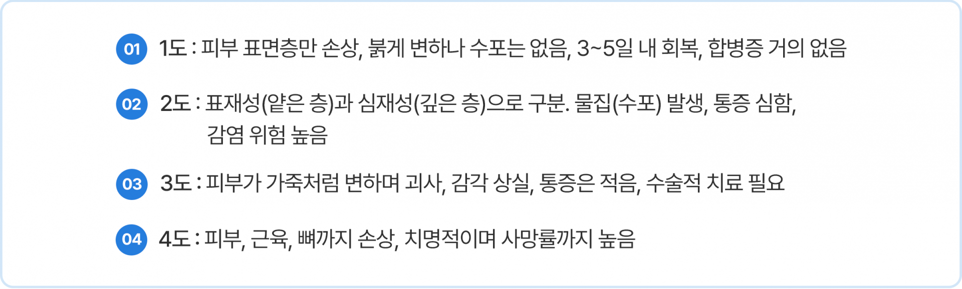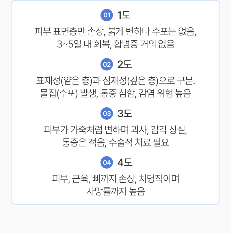 손상 깊이에 따라 피부의 일부만 영향을 받을 수도 있고,