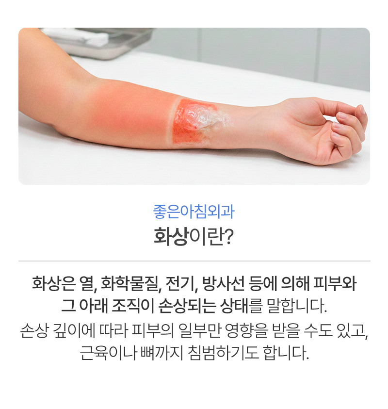 화상은 열, 화학물질, 전기, 방사선 등에 의해 피부와